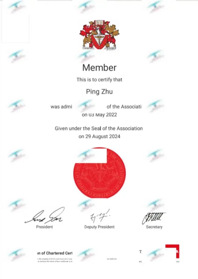 Zina女士是ACCA特许公认会计师(Chartered Certified Accountant),担任公司董事。