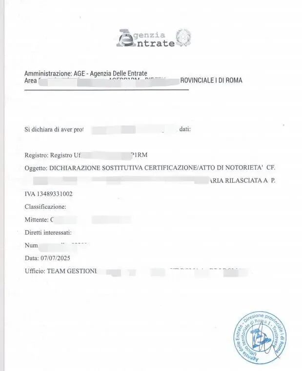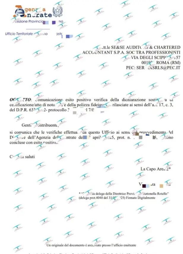 2 7月3日: Francesco先生携保函亲赴意大利税局递交。