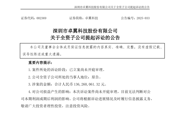 这些被召回的充电宝,是在 2023 年 6 月 5 日至 2024 年 7 月 31 日期间生产的,涉及 PAC20 - 272 等三款型号。 罗马仕表示,由于部分电芯原材料的问题,极少数产品在使用时可能会过热,在一些极端情况下,甚至存在燃烧风险。 本以为召回之后,事情能慢慢平息,可罗马仕的麻烦并未就此结束。 近期,A股上市公司卓翼科技发布公告,其全资子公司卓翼智造已正式起诉罗马仕及多家关联公司,诉求金额高达1.36亿元。具体包括追讨欠款8008万元、在途订单损失5500余万元以及呆滞物料费和停线放空人力损失费等。 来源网络